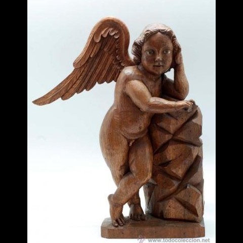 Angelito en talla de madera de Nogal